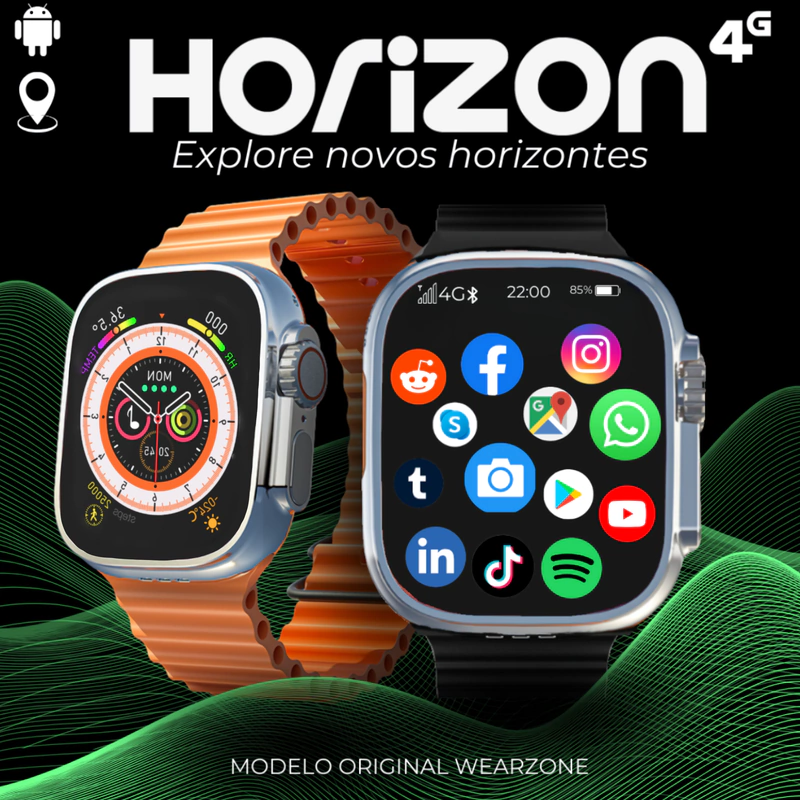 X Ultra 2 4G - Diferenciais do modelo: Este é o primeiro smartwatch android, este é o seu principal diferencial. Possui Google Play para instalar aplicativos e armazenamento interno, além de conectar-se à internet por 4G e Wifi.